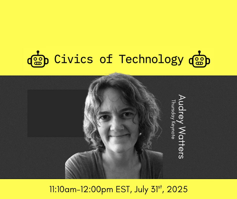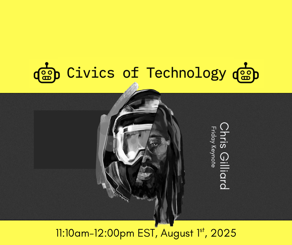 We are excited to announce that our fourth annual Civics of Technology conference will be held online on July 31st, from 11-3pm EST and on August 1st, 2024 from 11-3pm!