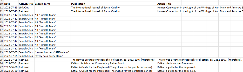 I think this is the search and click data – what you are searching for, reading, and borrowing – that has the 35-day retention period. This data has a common key that can reaggregate it with separately stored PII such as email address, name, or library account number. If you have an EBSCO account, you can easily see that this is the case by submitting a data request within your account. If the two silos of data could not be reassociated, you would not be able to get your data. A past report of my data looked like this: